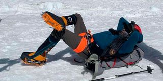 James Kagambi takes a breather on his way to the summit of Mount Everest.