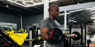 Juma Hamisi works on his triceps at the Workout Warehouse gym in Nairobi on February 9, 2025