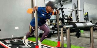 Peter Kamau pushing a sled at Alpha Fitness gym in Thindigua a full body workout for building power and strength on August 29, 2025.