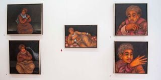 Oil pastel paintings by Onesmus Okamar, on display during the Archives of My Soul exhibition at House of Friends Gallery, Kibera, Nairobi, on June 30, 2025.