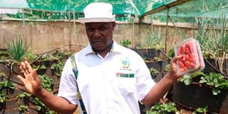 David Mwangi during an interview in his strawberry vertical farms in Banana, Kiambu County on September 18,2025