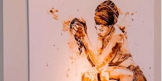 “Bond,” Coffee on Canvas by Ekene Ngige, exhibited at Nomadic Art Gallery, Nairobi, 2025.