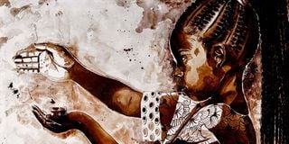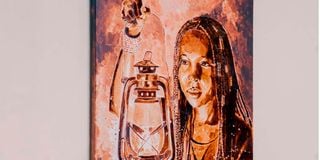 “This Little Light of Mine,” Coffee on Canvas by Ekene Ngige, exhibited at Nomadic Art Gallery, Nairobi, 2025.