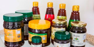 Some of the assorted products of Kijani honey pictured at the facility in Jamhuri Park Show ground in Nairobi on November 3, 2025.