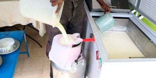 Milk stored inside a freezer at the Mbicha’s dairy farm in Joska, Machakos on June 11, 2025.