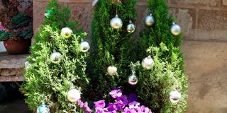 Cypress tree adorned with Christmas decorations at Irene Kui's home garden in Riara Ridge Limuru, Kiambu County on December 17, 2024.