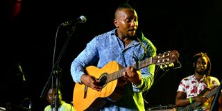 Singer-songwriter and percussionist Idd Aziz performs during the Pawa Festival concert along Koinange Street in Nairobi on December 20, 2015.