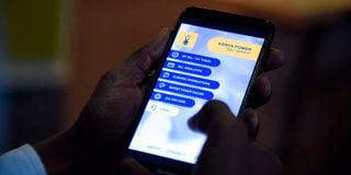 A user navigating the MyPower App, Kenya Power android app, available on the PlayStore, that allows users to access a wide array of services including bill enquiries, prepaid meter enquiries, power quality reports and interaction with the customer care team on April 28, 2021