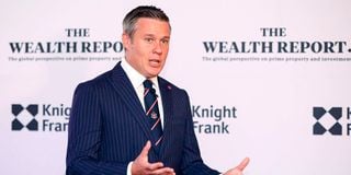 Knight Frank Kenya CEO Mark Dunford addressing journalists during the Wealth Report 2025 – Kenyan 2nd Edition launch event at Capital Club in Nairobi on May 13, 2025.