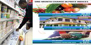 KNBS said the food and non alcoholic drinks index –the heaviest weight in the CPI—recorded the biggest drop of 1.88 per cent in July compared to the previous month.