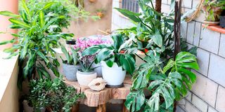 Her most prized tropical foliage includes Alocasia cuprea, Alocasia black velvet, Alocasia silver dragon and Alocasia amazonica. She also grows camellias, donkey tails, fittonias, Chinese evergreens (Aglaonema) and ponytail palms.