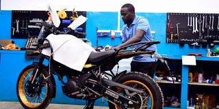 Ganatra Plant and Equipment technician Johnson Mwatha checks a Royal Enfield Himalayan 450CC motorbike on September 27, 2025.