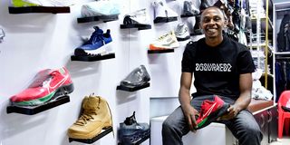 His shop is best known for running shoes, which he says move faster than gym or casual sneakers. Customers typically spend between Sh2,500 and Sh3,500, though many ask specifically for premium brands.
