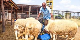 Amagoh Farm owner and founder Bernard Njaramba Wagitu inspects his dorper sheep at his farm in Kantafu along Kangundo Road on July 19, 2024.