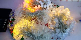 Fairy lights displayed at Jay's Essentials shop in the Bazaar building along Moi Avenue, Nairobi, on November 27, 2025.