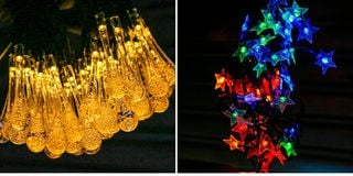 Warm Teardrop solar fairy lights (left) and multicolor Star solar fairy lights on display at Ambience Lights shop, Superior Arcade Building, Nairobi, November 25, 2025.