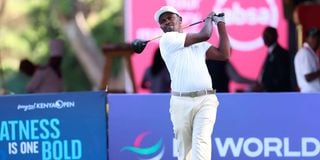Simon Njogu follows the progress of his tee off from the 14th hole tee during the Muthaiga Open Golf tournament on February 17, 2019 at the Muthaiga Golf Club