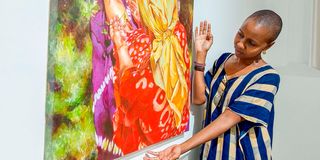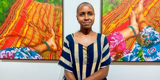 April Kamunde poses for a photo during the ‘Fabric of Our Being’ art exhibition at the Circle art gallery in Nairobi on June 29, 2025.
