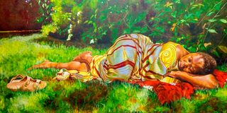 “I Want to Rest,” a work by April Kamunde, on display during the Fabric of Our Being exhibition at the Circle Art Gallery in Nairobi on June 29, 2025.