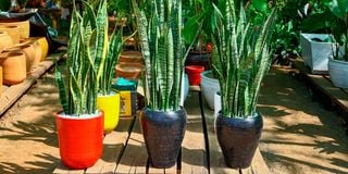 A potted Snake Plant on display at Betty Kinya’s roadside flower stall along James Gichuru Road in Lavington, Nairobi, on November 22, 2025.