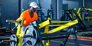 Collins Omondi, fitness consultant and enthusiast, performs the Chest Press exercise during his routine workout at Alpha Fit Gym along Kiambu Road on October 2, 2025.