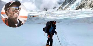 James Kagambi at the Base Camp, en route to the summit of Mount Everest.