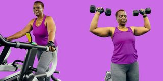 “I’ve been active for more than 30 years,” she says. “My body has muscle memory, so I can switch things up easily. I don’t stress about what comes first. One week I’m cycling; the next I’m lifting or doing cardio; the next I could be swimming. Sticking to one routine plateaus your growth.”
