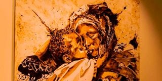 “Bond,” Coffee on Canvas by Ekene Ngige, exhibited at Nomadic Art Gallery, Nairobi, 2025.