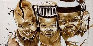 “This Little Light of Mine,” Coffee on Canvas by Ekene Ngige, exhibited at Nomadic Art Gallery, Nairobi, 2025.