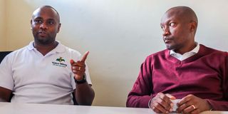 Kijani Honey director Anthony Mwangi (left) and co-founder Henry Guchu during an interview at their facility in Jamhuri Park Showground, Nairobi, on November 3, 2025.