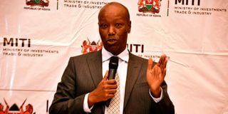 Ministry of Investments, Trade and Industry Cabinet Secretary Lee Kinyanjui makes his remarks during the Consultative Session with Local Investors held at JW Marriott Hotel on May 29, 2025.