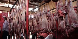 Goat meat at Bismilahi slaughter house at Kiamaiko market in Nairobi on December 31, 2016.