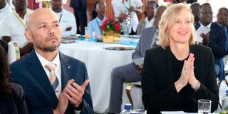 Mars Wrigley Plant Director for the Nairobi Factory Mustaffa Bin Kamaludin (left) with US Embassy in Nairobi Charge d’Affaires Ms Susan Burns during the launch of the new sugar-free gum production line at the Mars Wrigley production plant in Athi River, Machakos County on November 25, 2025.